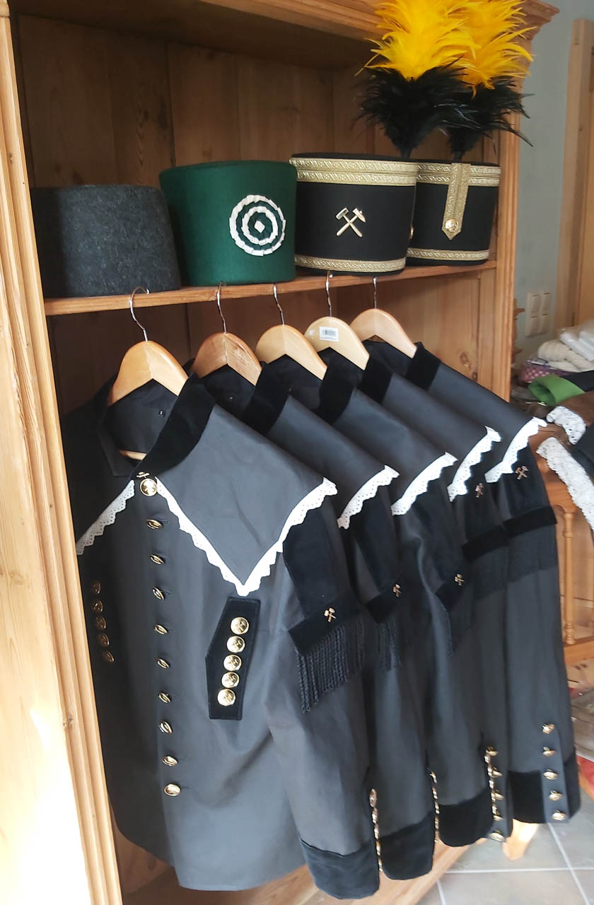 Wir fertigen Bergkittel in hoher Qualität , mit handwerklicher Genauigkeit in zwei verschiedenen Verarbeitungen angefertigt nach einem Original in Vorlage von 1920. Weiterhin bieten wir Ihnen die passenden Accesoires wie Krawatten und Schachthüte.